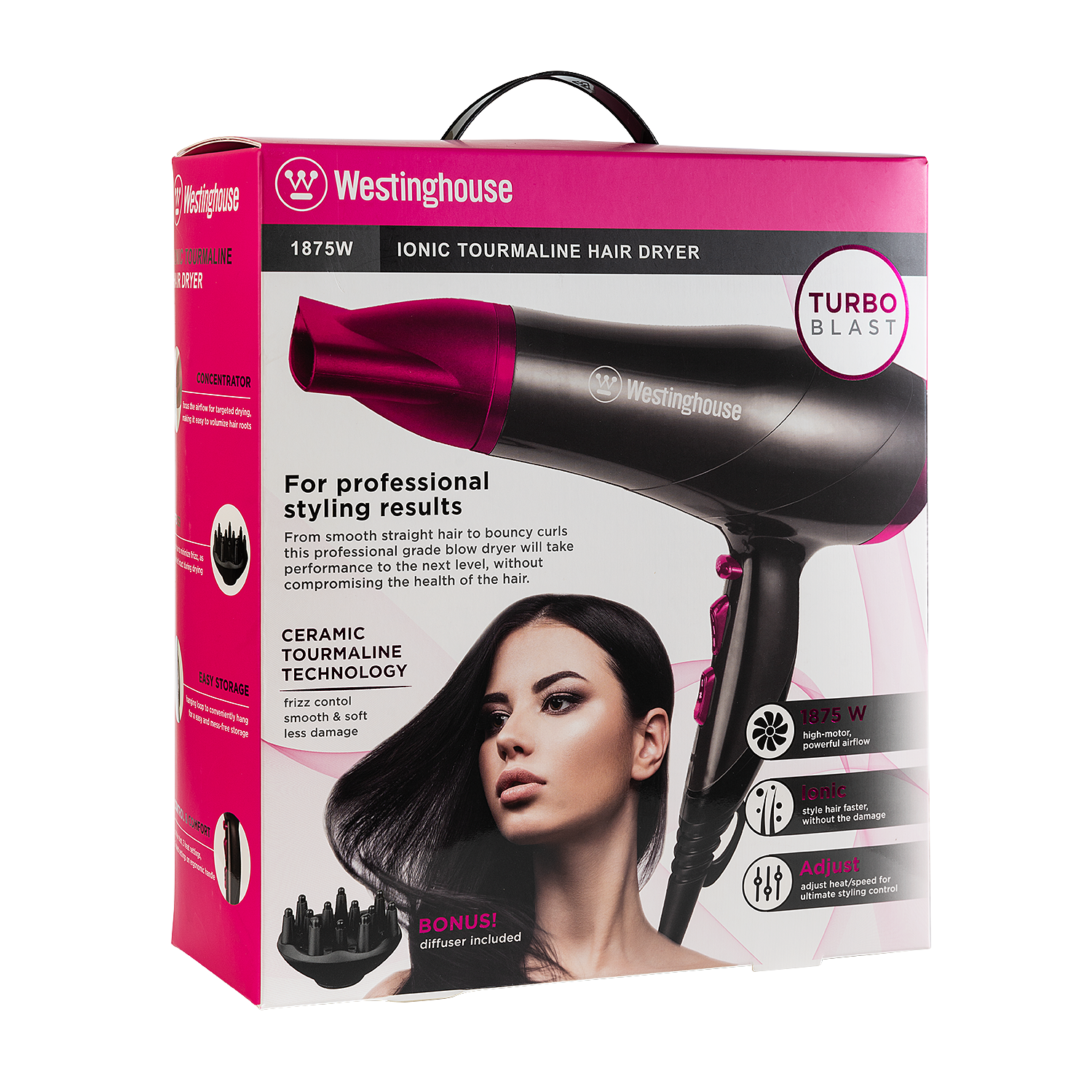 Experience professional-grade styling at home with the Westinghouse Ionic Tourmaline Hair Dryer. Combining advanced technology with ergonomic design, this hair dryer delivers exceptional results for smooth and frizz-free hair effortlessly.